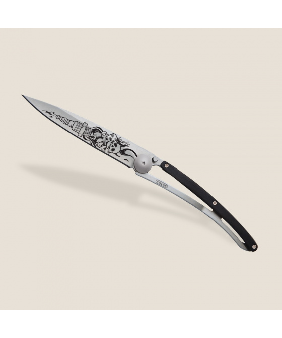 Stylový ultralehký nůž Deejo se střenkou z ebenového dřeva.
