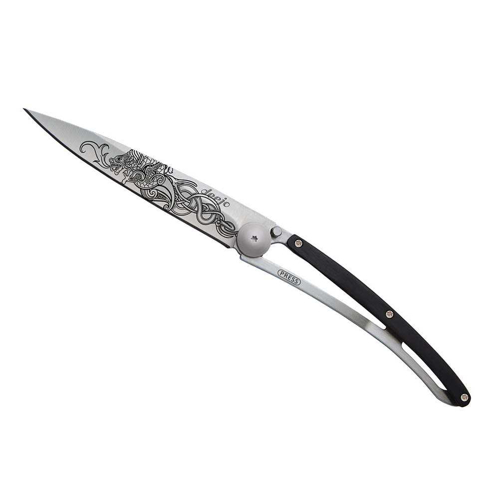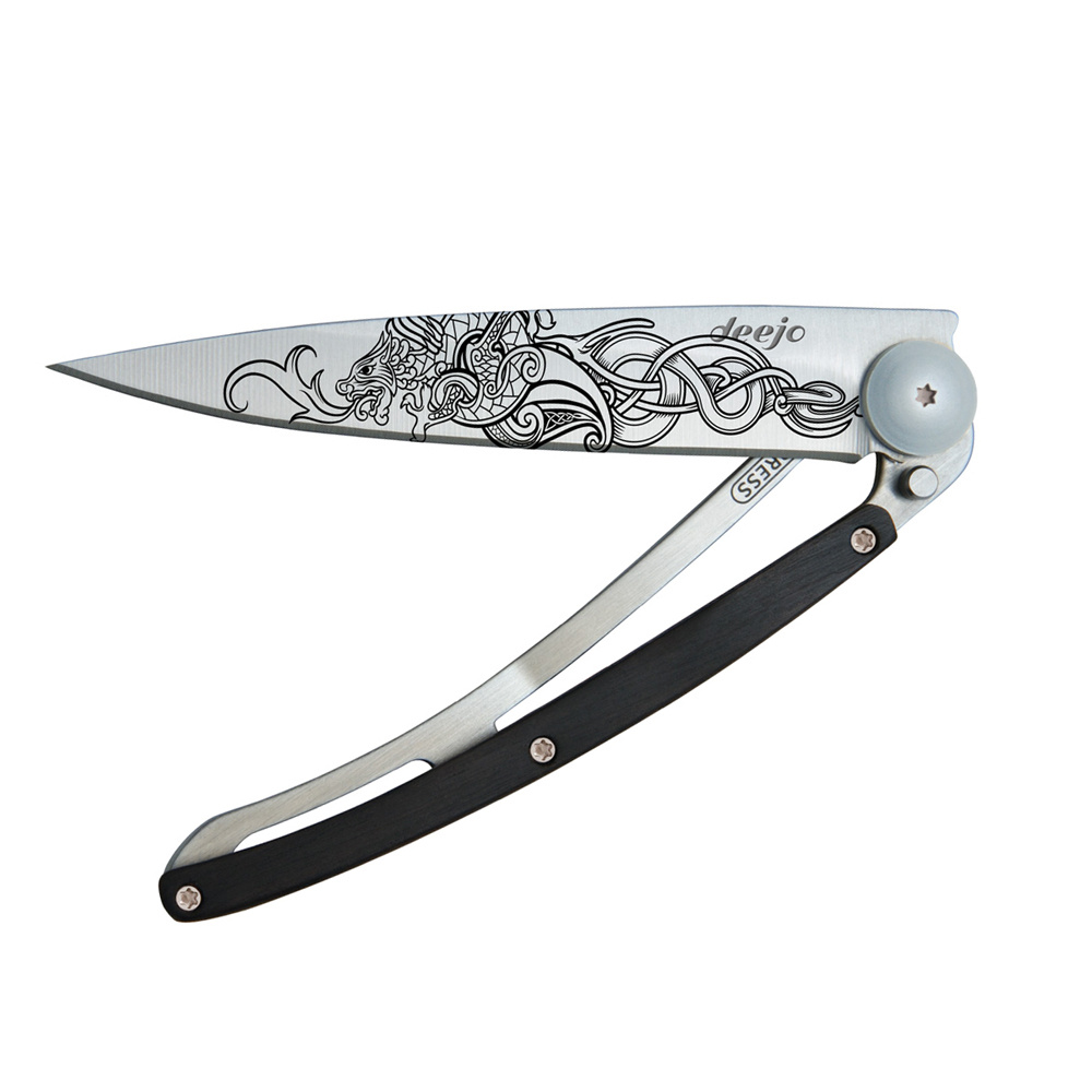 Stylový ultralehký nůž Deejo se střenkou z ebenového dřeva.