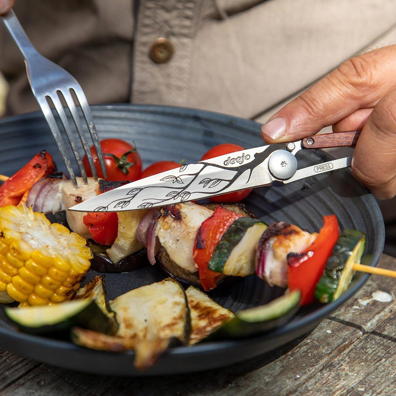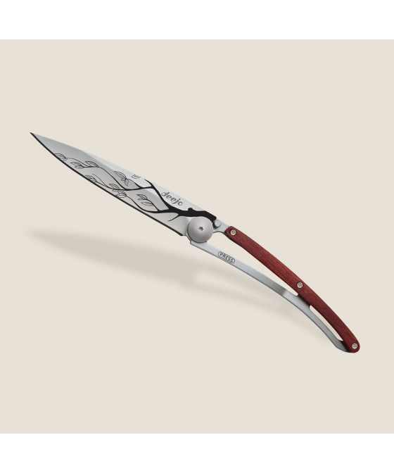 Stylový ultralehký nůž Deejo se střenkou z dřeviny coralwood a motivem "větev".