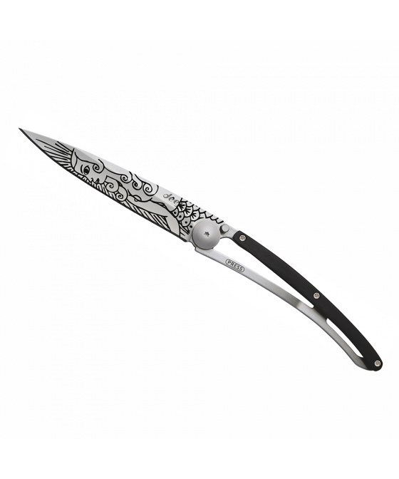 Stylový ultralehký nůž Deejo se střenkou z ebenového dřeva a tetováním "mořská panna"