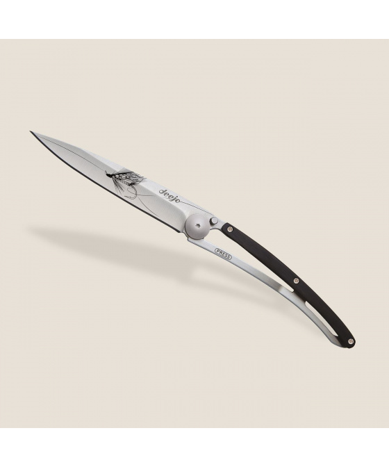 Stylový ultralehký nůž Deejo se střenkou z ebenového dřeva a tetováním "stříbrný wilkinson".