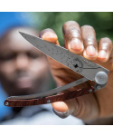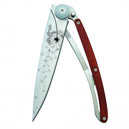 Stylový ultralehký nůž Deejo se střenkou z dřeva coralwood a motivem "přeji si".