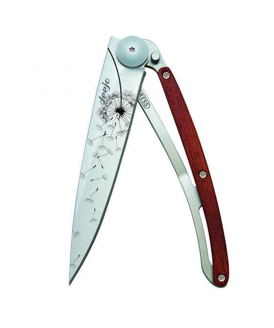 Stylový ultralehký nůž Deejo se střenkou z dřeva coralwood a motivem "přeji si".Více