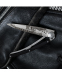 Stylový ultralehký nůž Deejo se střenkou z ebenového dřeva, čepel s tetováním Rock´n Roll.Více