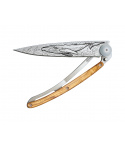 Stylový ultralehký nůž Deejo se střenkou z olivového dřeva a motivem velryby.Více