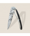 <p>Stylový ultralehký nůž Deejo z kolekce Tattoo se střenkou z ebenového dřeva s tetováním &quVíce