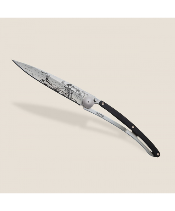 <p>Stylový ultralehký nůž Deejo z kolekce Tattoo se střenkou z ebenového dřeva s tetováním &qu