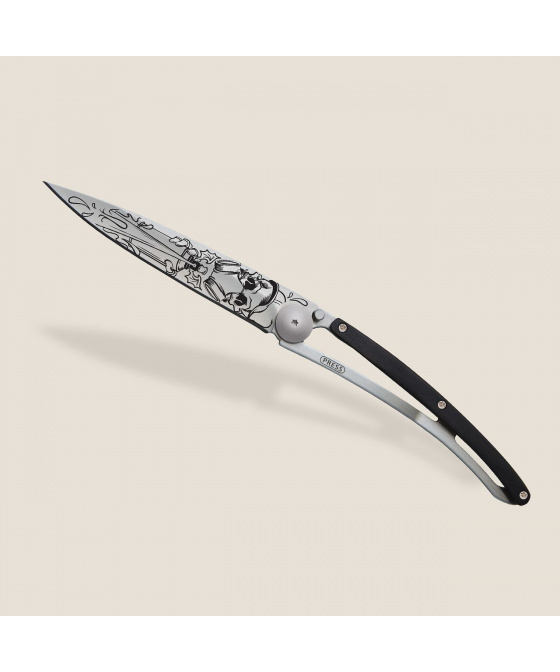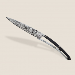 Stylový ultralehký nůž Deejo z kolekce Tattoo se střenkou z ebenového dřeva s tetováním "Spray&