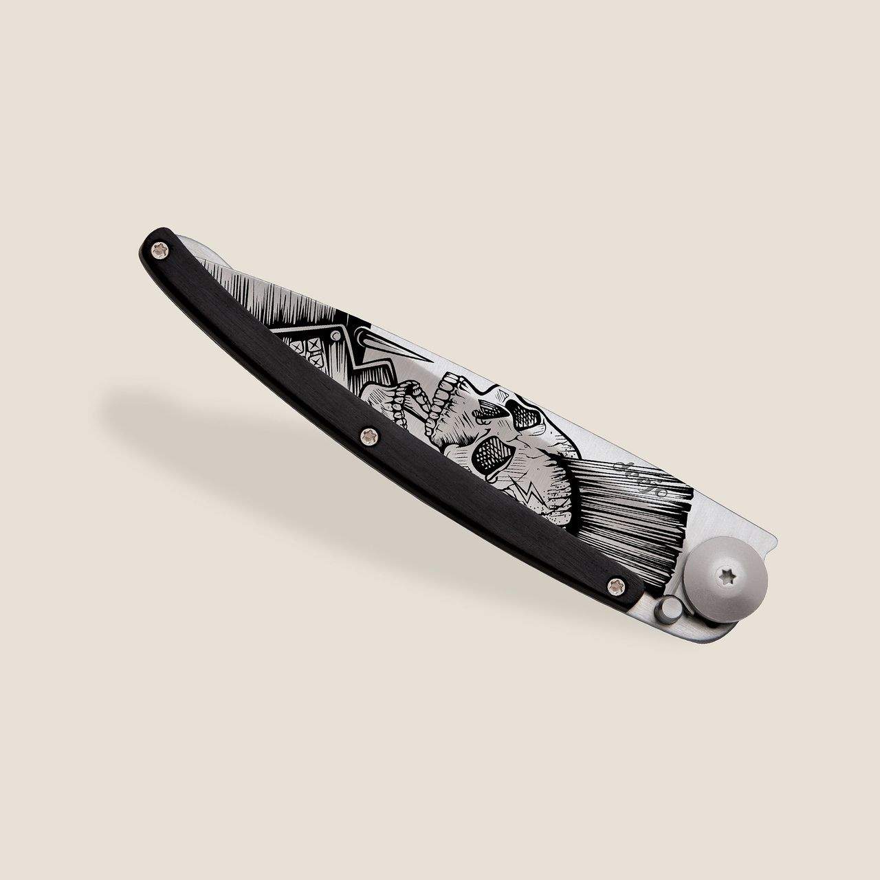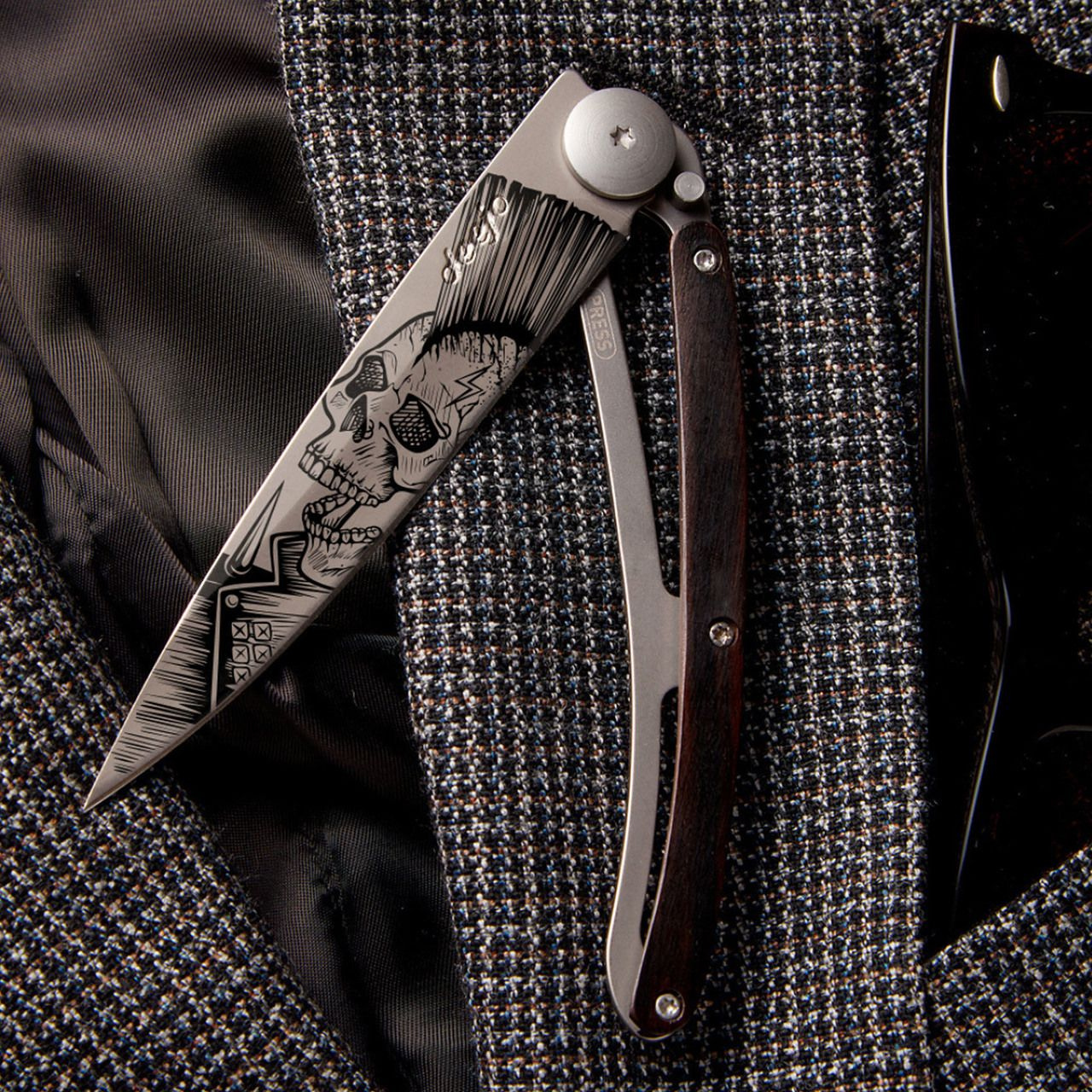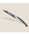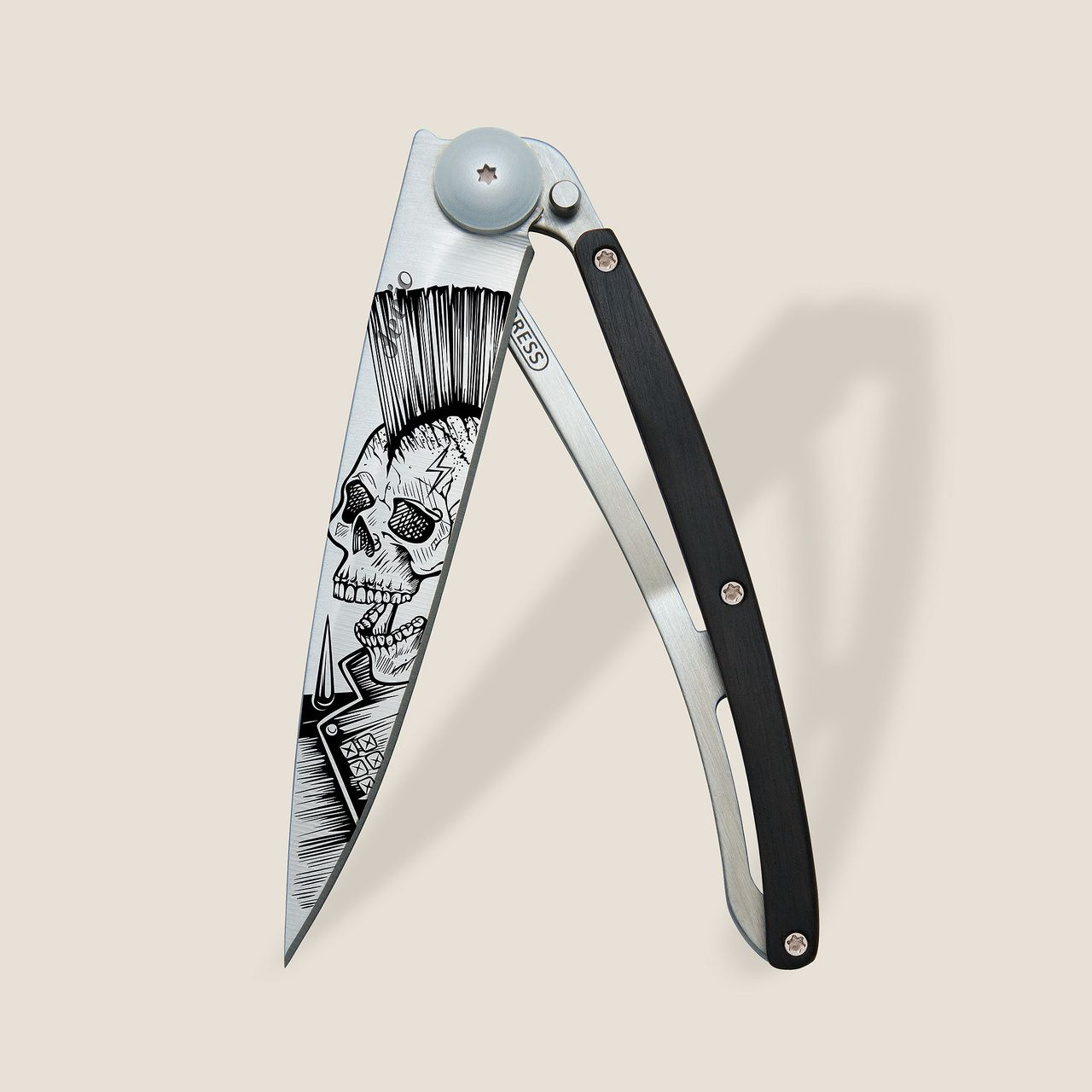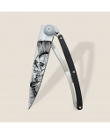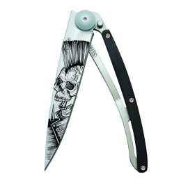 Stylový ultralehký nůž Deejo z kolekce Tattoo se střenkou z ebenového dřeva s tetováním "Punk".
