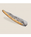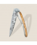 <p>Stylový ultralehký nůž Deejo se střenkou z olivového dřeva a motivem 24 h Le Mans 1966.<Více