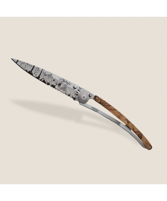Kapesní nůž Deejo 1CC513 Tattoo Serration 37g brown camo Hunting Day
