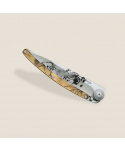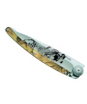 Stylový ultralehký nůž Deejo s hliníkovou střenkou s hydrografickým potiskem a světlou čepelí s tetoVíce