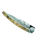 Stylový ultralehký nůž Deejo s hliníkovou střenkou s hydrografickým potiskem a světlou čepelí s tetoVíce