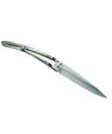 Stylový ultralehký nůž Deejo s hliníkovou střenkou s hydrografickým potiskem a světlou čepelí s tetoVíce