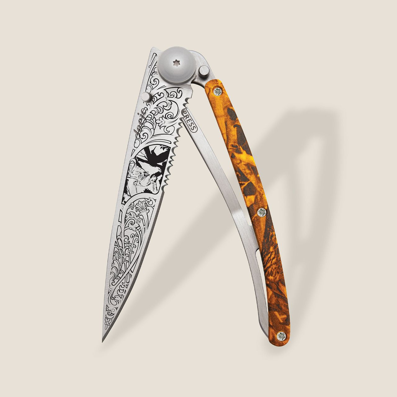 Kapesní nůž Deejo 1CM501 Tattoo Serration 37g brown camo Woodcock
