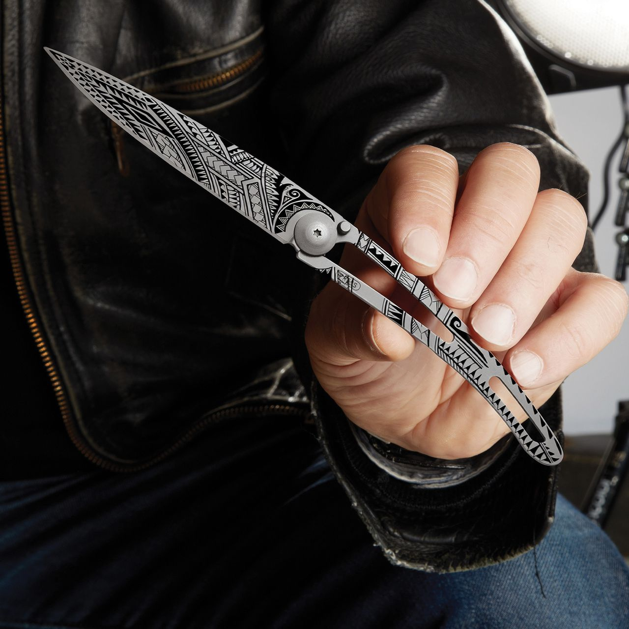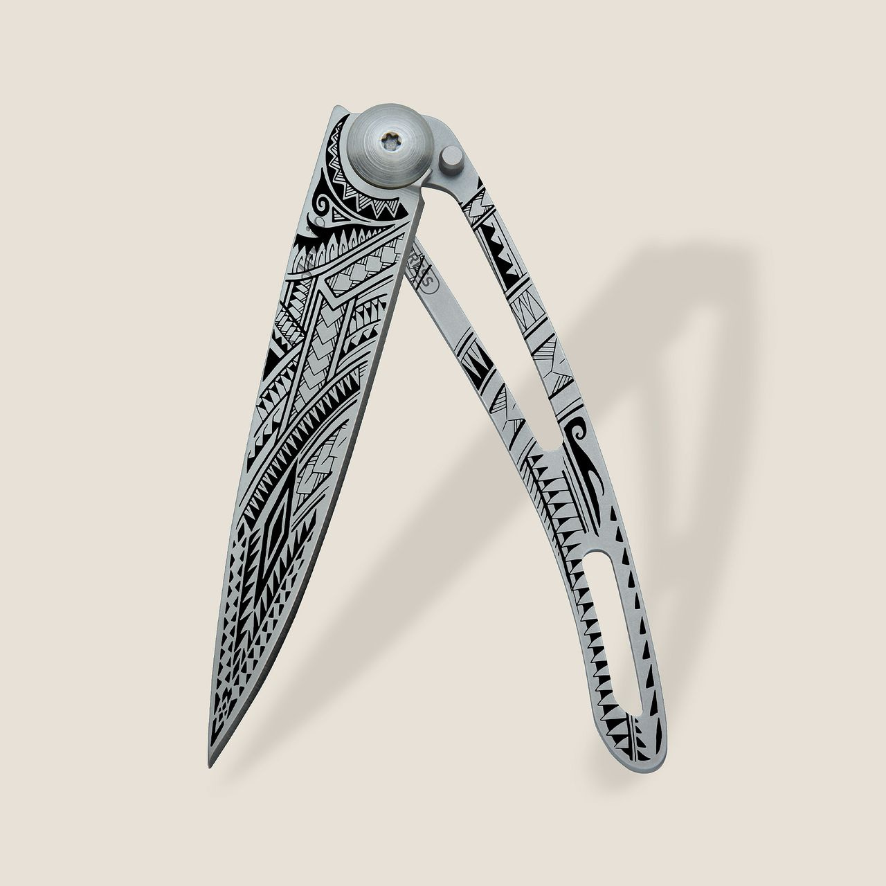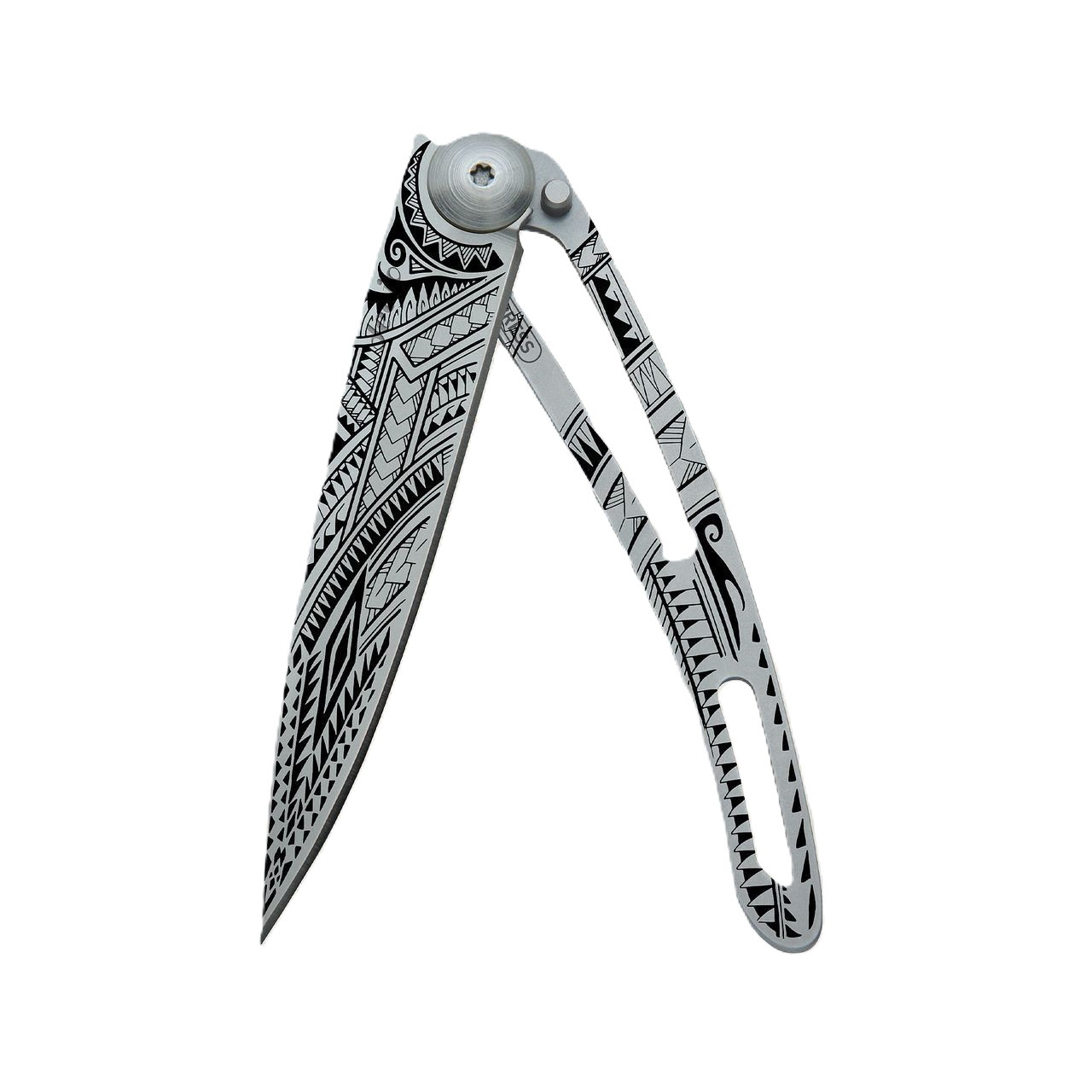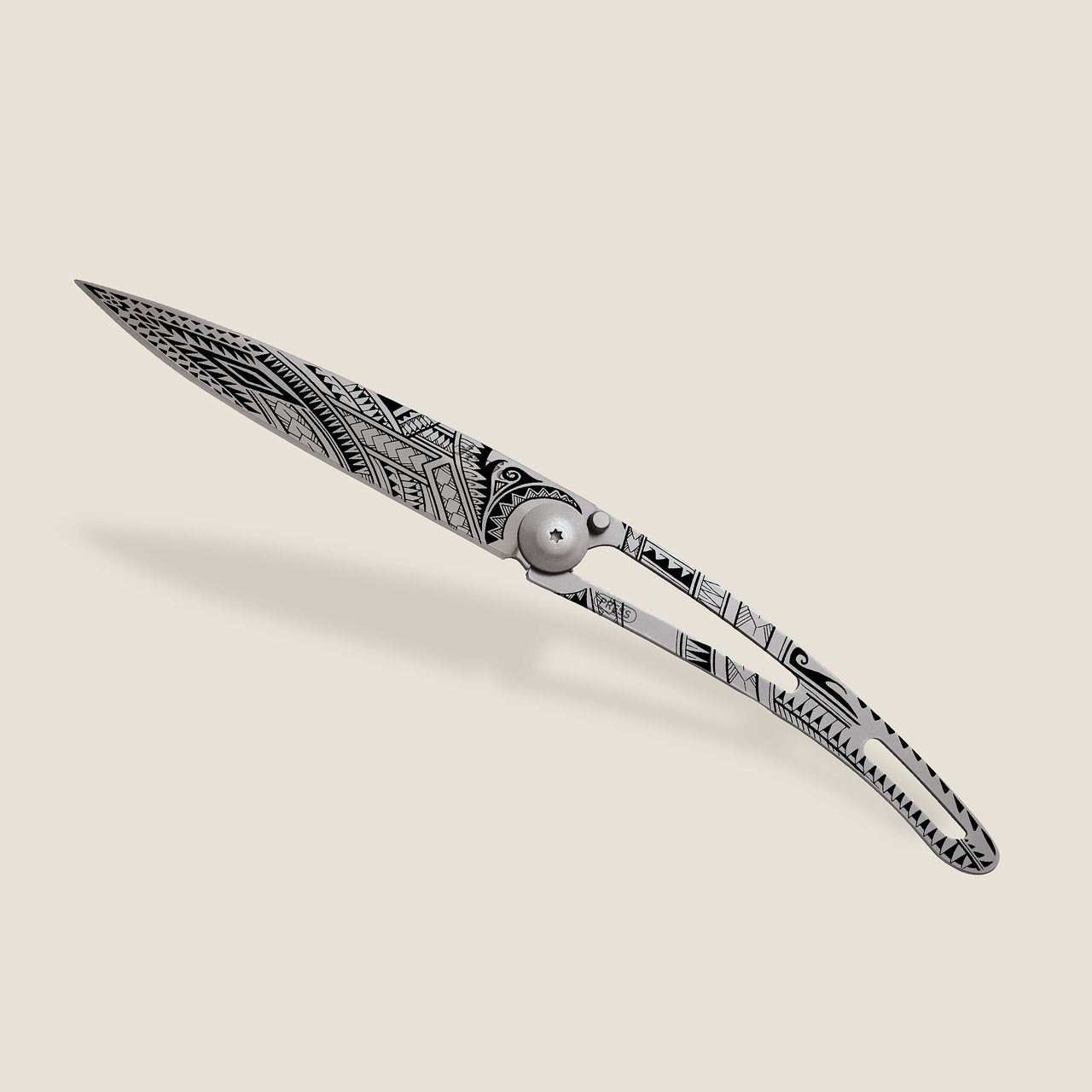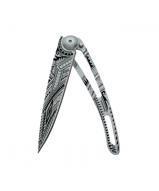 <p>Stylový ultralehký nůž Deejo ze série Naked o hmotnosti 37 gramů, s čepelí s polynéským tetováním Pe’a.</p>