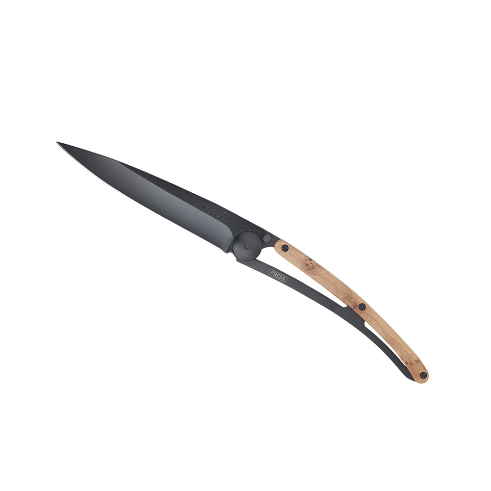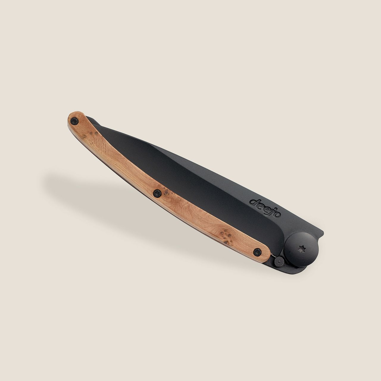 Stylový ultralehký nůž Deejo se střenkou z kořene exotického jalovce.