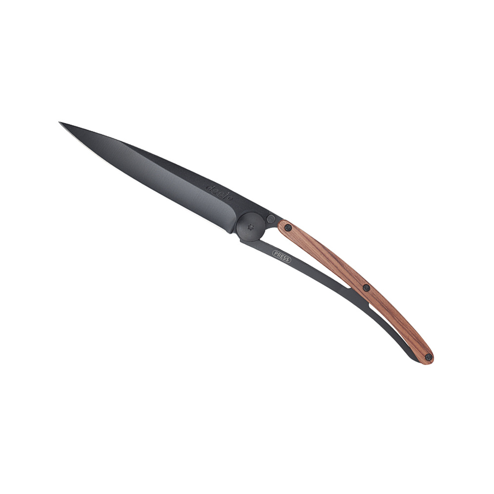 Stylový ultralehký nůž Deejo se střenkou z dřeviny coralwood v čistém jednoduché stylu.
