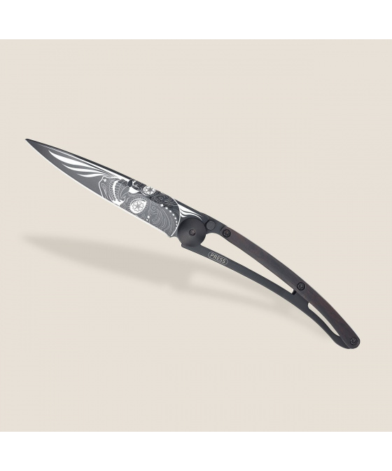 Stylový ultralehký nůž Deejo se střenkou z ebenového dřeva.