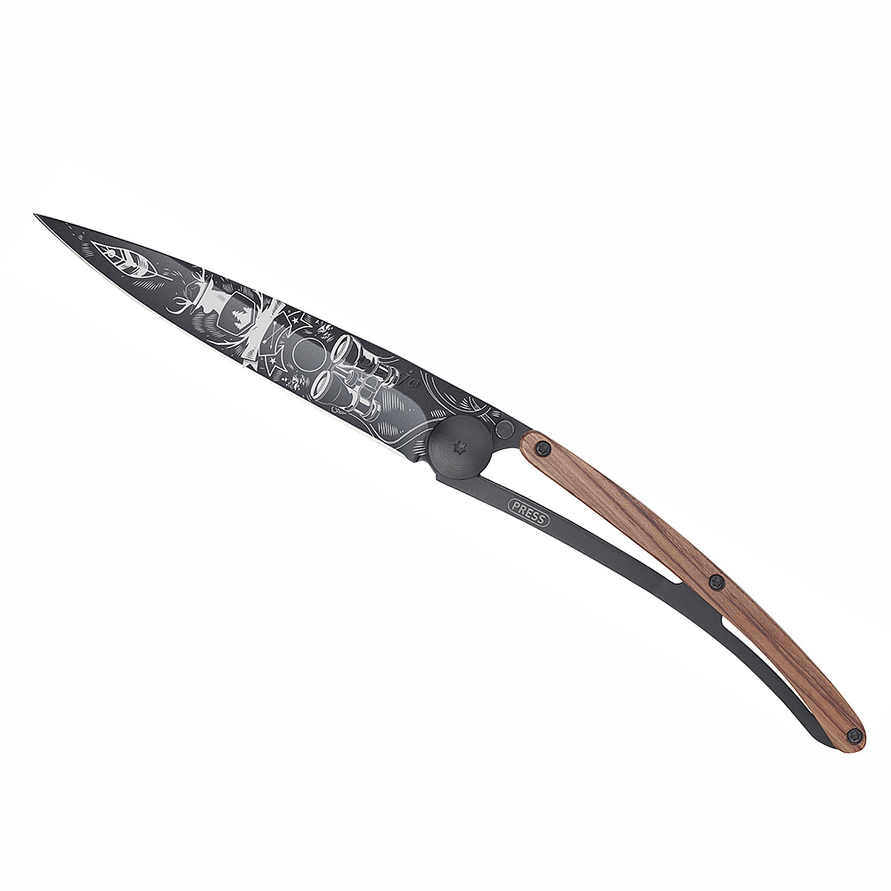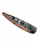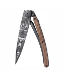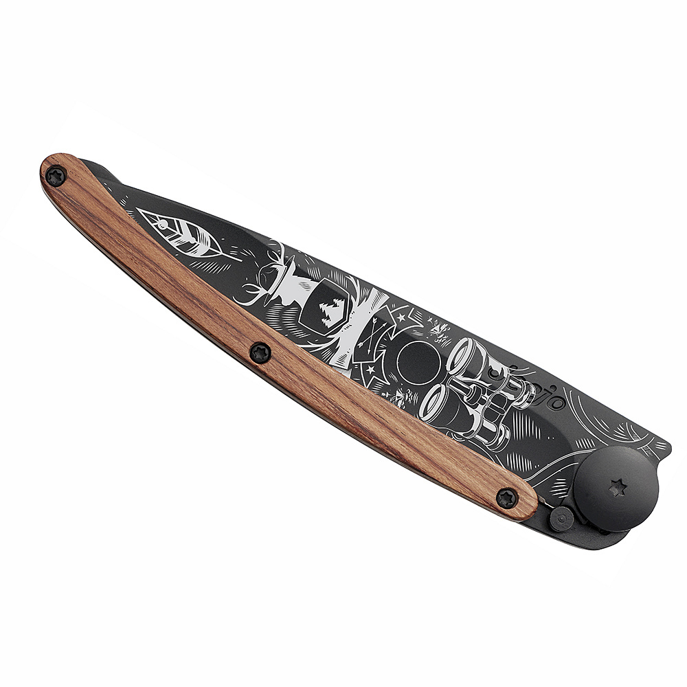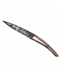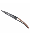 Stylový ultralehký nůž Deejo se střenkou z dřeviny coralwood a tetováním "divočina".