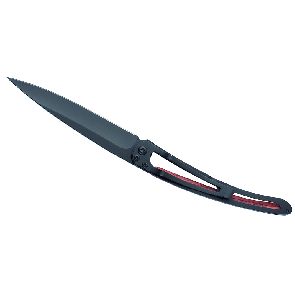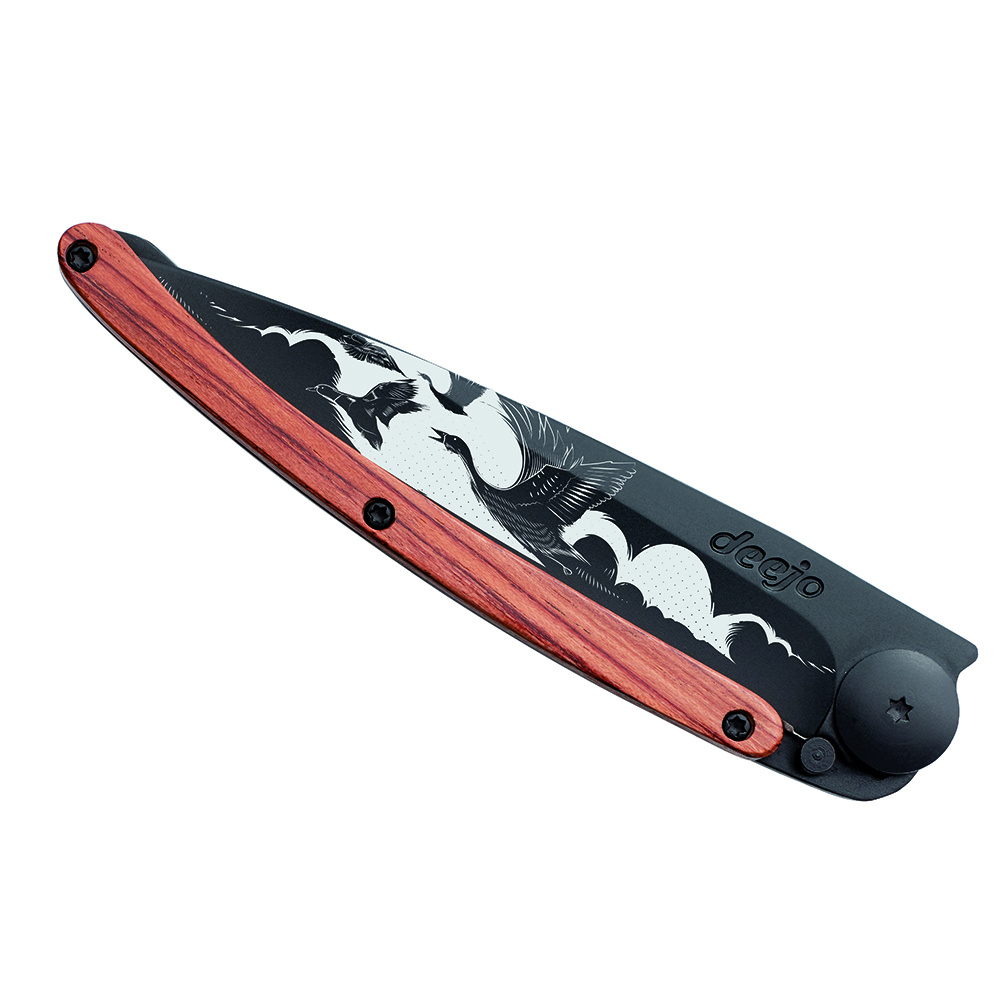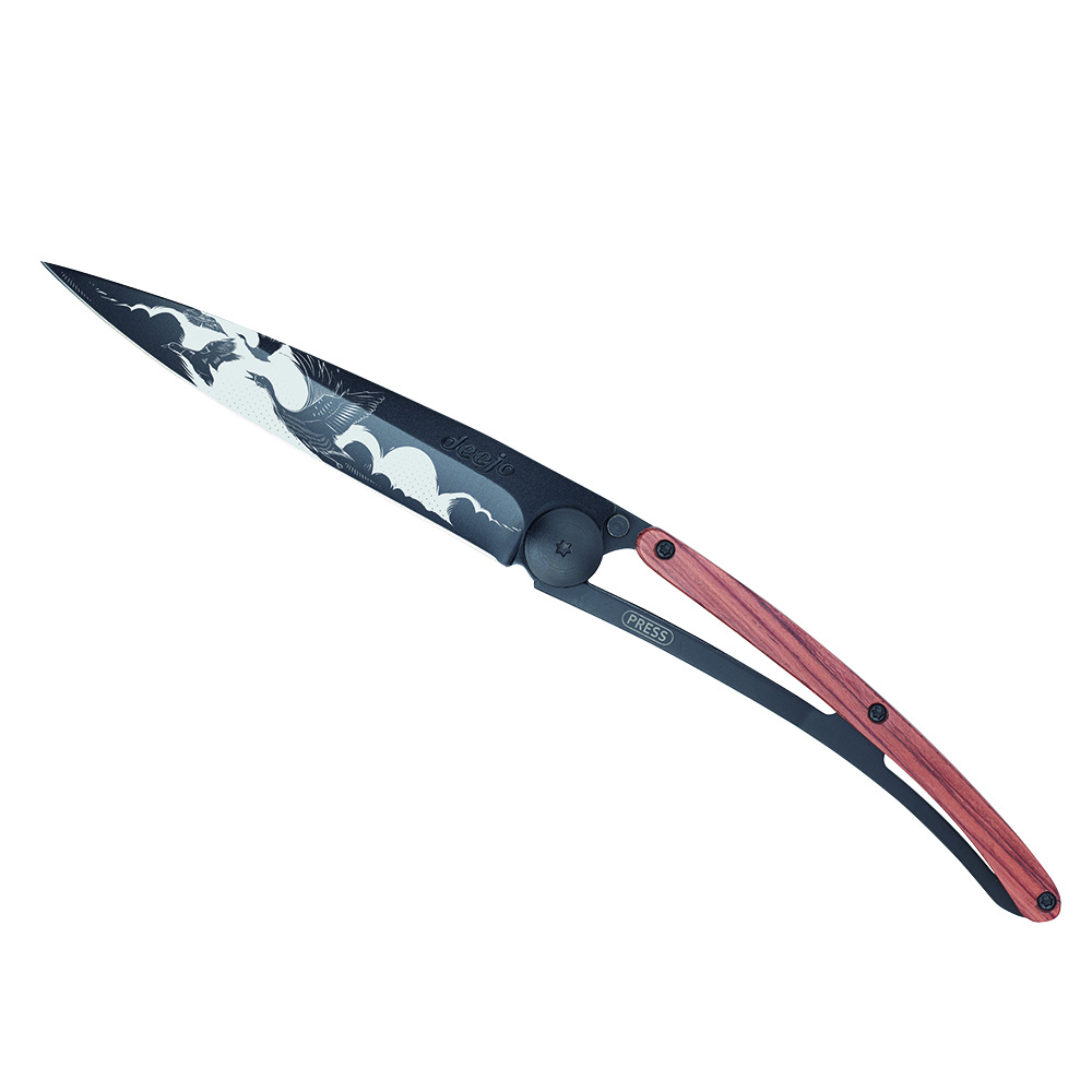 Stylový ultralehký nůž Deejo se střenkou z dřeviny coralwood a tetováním "let".
