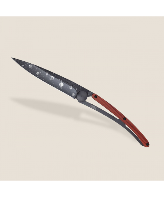 Stylový ultralehký nůž Deejo se střenkou z přírodního dřeva coralwood a tetováním "astro".