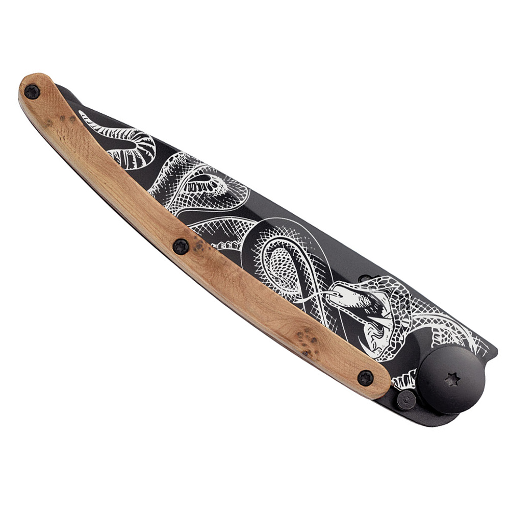 Popis Kapesní nůž Deejo 1GB127 Tattoo Black 37g juniper wood Snake