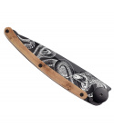 Stylový ultralehký nůž Deejo se střenkou z kořene exotického jalovce a tetováním "had".Více