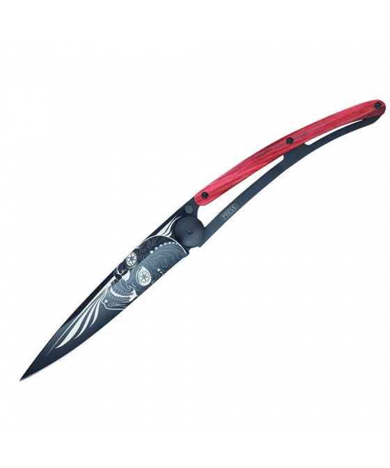 Diskuze k produktu Kapesní nůž Deejo 1GB143 Tattoo Black 37g red beech Latino Skull