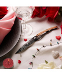 Stylový ultralehký nůž Deejo se střenkou z olivového dřeva a motivem "yin & yang".