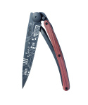 Stylový ultralehký nůž Deejo se střenkou z přírodního dřeva coralwood a tetováním "Circuit Boar