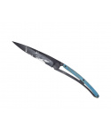 Stylový ultralehký nůž Deejo se střenkou z modře mořeného bukového dřeva a motivem žraloka.Více