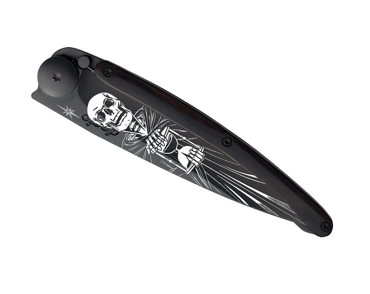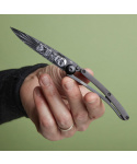 Stylový ultralehký nůž Deejo se střenkou z ebenového dřeva a motivem nesmrtelnosti.Více