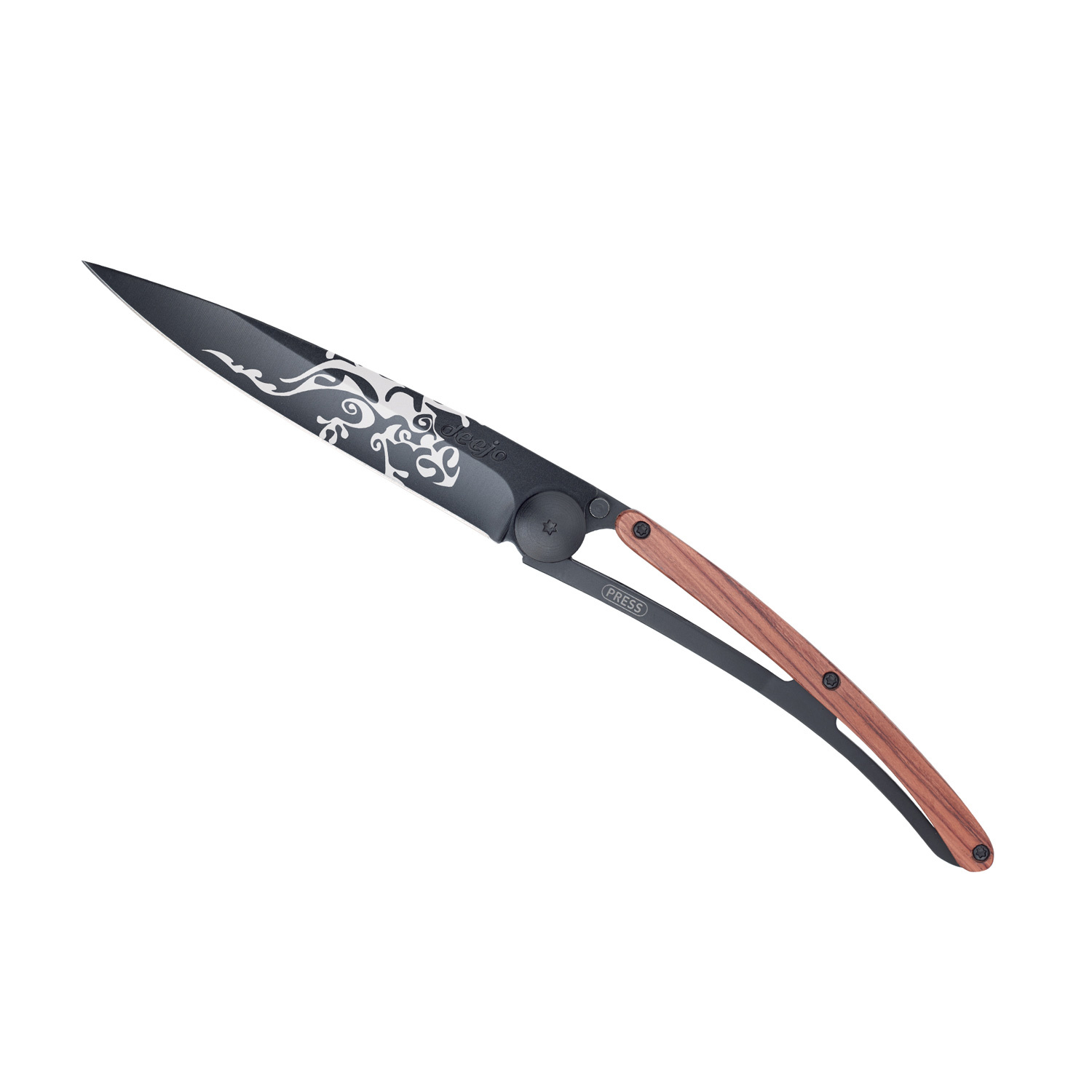 Popis Kapesní nůž Deejo 1GB170 Tattoo Black 37g coralwood Gecko