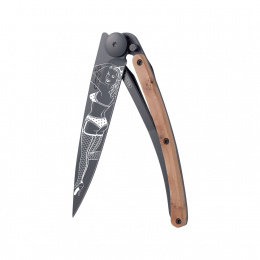 Popis Kapesní nůž Deejo 1GB175 Tattoo Black 37g juniper wood Pin Up
