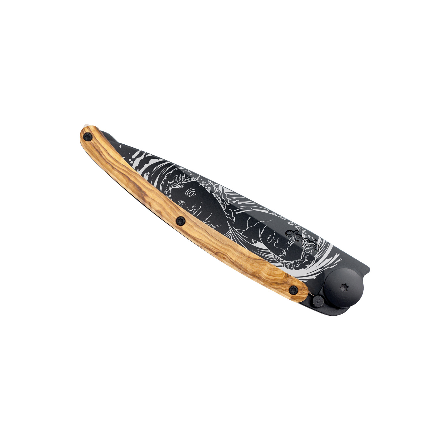 Popis Kapesní nůž Deejo 1GB182 Tattoo Black 37g olive wood Gemini