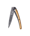 Stylový ultralehký nůž Deejo z kolekce Zodiac se střenkou z olivového dřeva a motivem znamení panny.