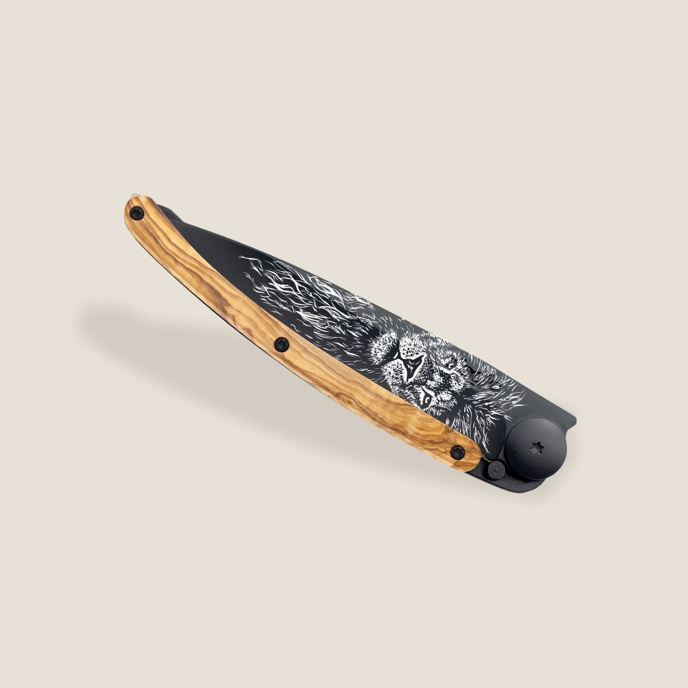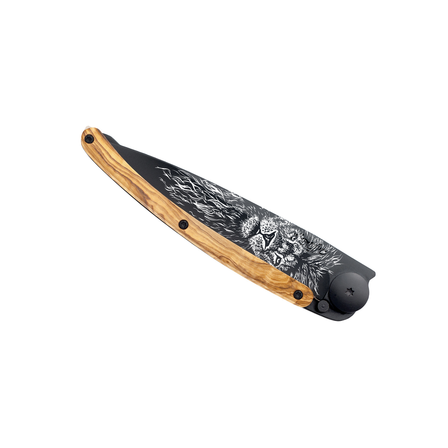 Kapesní nůž Deejo 1GB187 Tattoo Black 37g olive wood Lion
