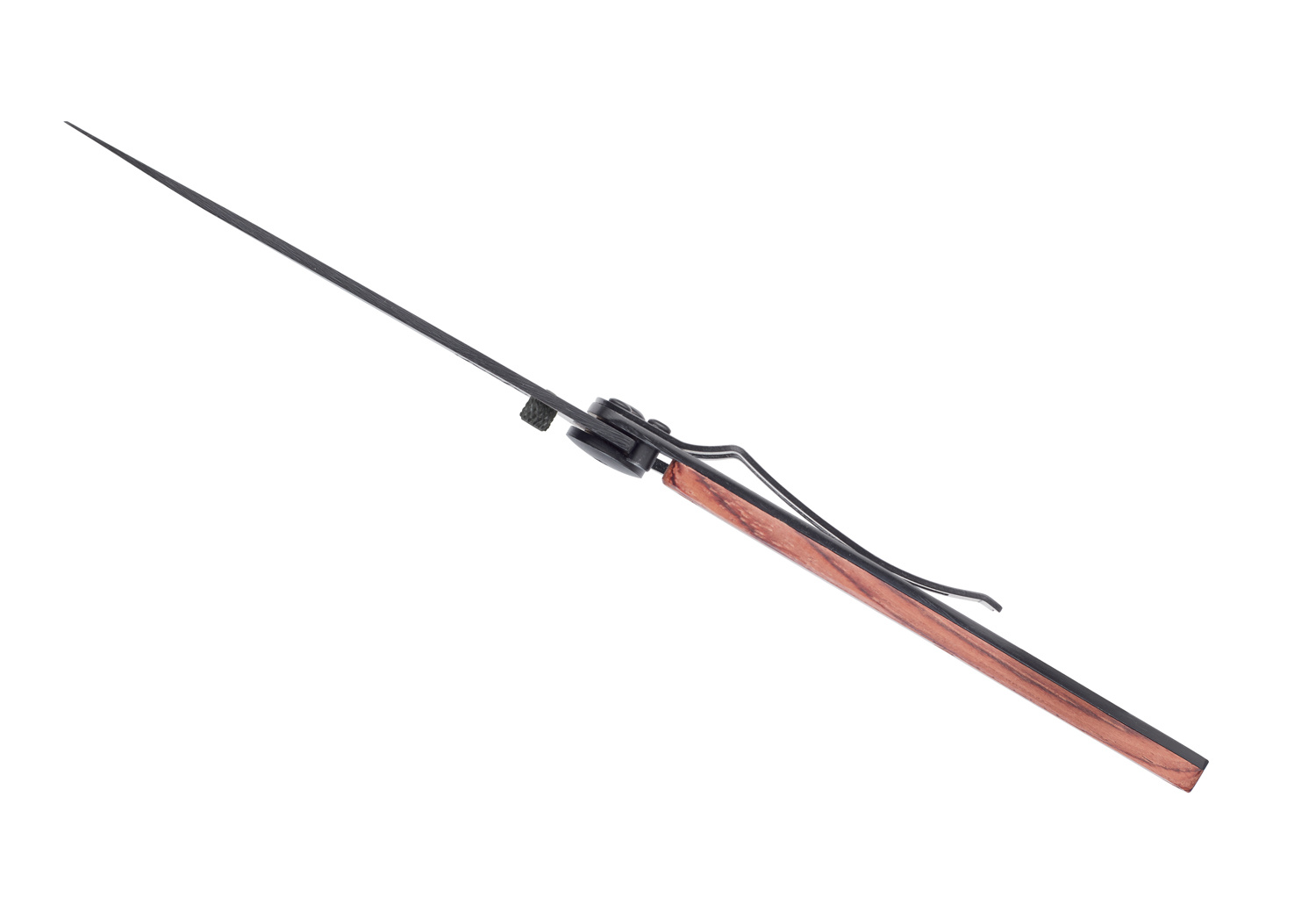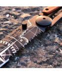 Decentní černé provedení s motivem Země neznámá, kolíkem pro jednoruční otevírání čepele a částečně zubatým ostřím.
