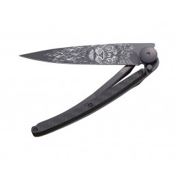 Stylový ultralehký nůž Deejo se střenkou z karbonu a tetováním lev.Více