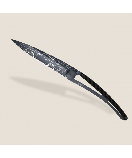 Stylový ultralehký nůž Deejo se střenkou z uhlíkového vlákna a tetováním "Young timer".
