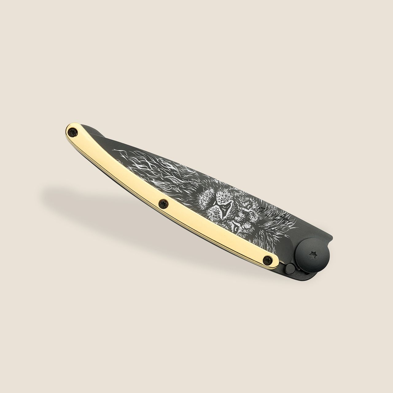 Kapesní nůž Deejo 1GM022 GOLD Tattoo Black 37g 23kt yellow gold Lion