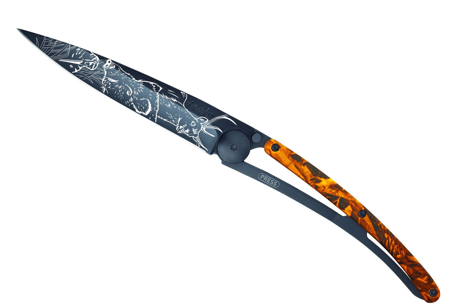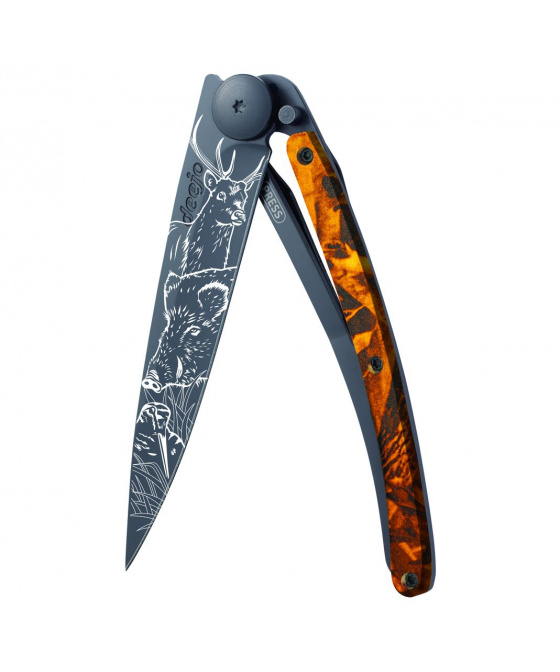 Kapesní nůž Deejo 1GM030 Tattoo Black 37g orange camo Hunting Scene