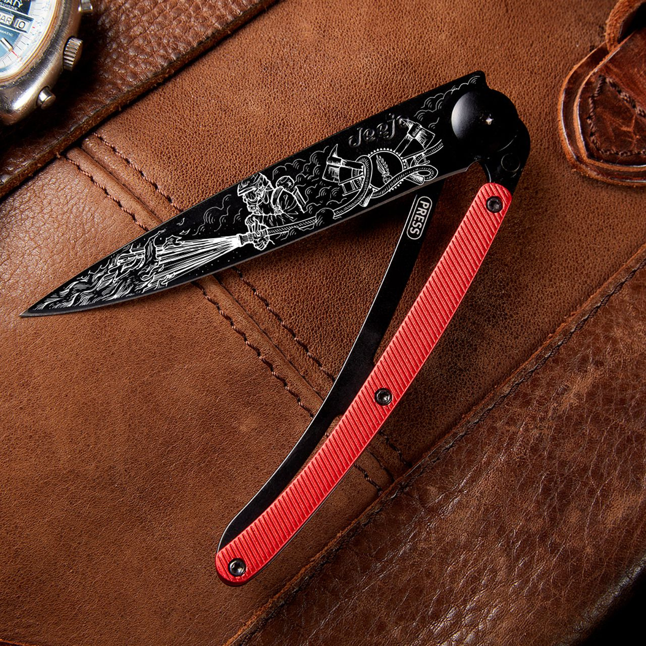 Kapesní nůž Deejo 1GM038 Tattoo Aluminium 37g aluminium red Firefighter
