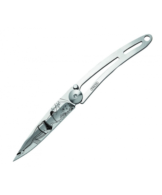 Stylový ultralehký nůž Deejo ze série Naked ve verzi 15 gramů a motivem Pin Up girl