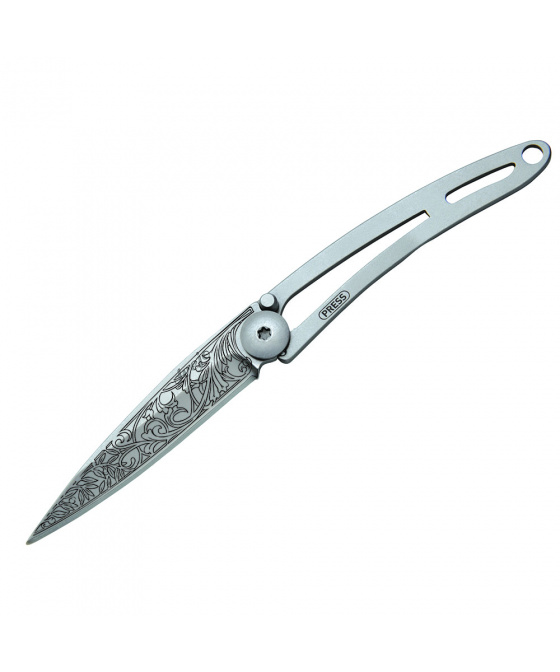 Stylový ultralehký nůž Deejo ze série Naked ve verzi 15 gramů a laserem vytetovaným motivem Art Nouveau.