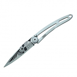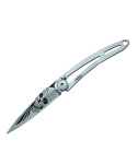 Stylový ultralehký nůž Deejo ze série Naked ve verzi 15 gramů a laserem vytetovaným motivem lebky.