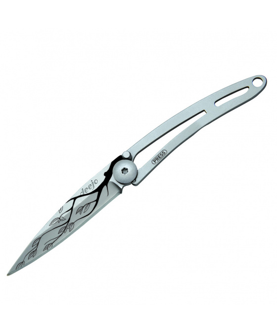 Stylový ultralehký nůž Deejo ze série Naked ve verzi 15 gramů a laserem vytetovaným motivem stromu.
