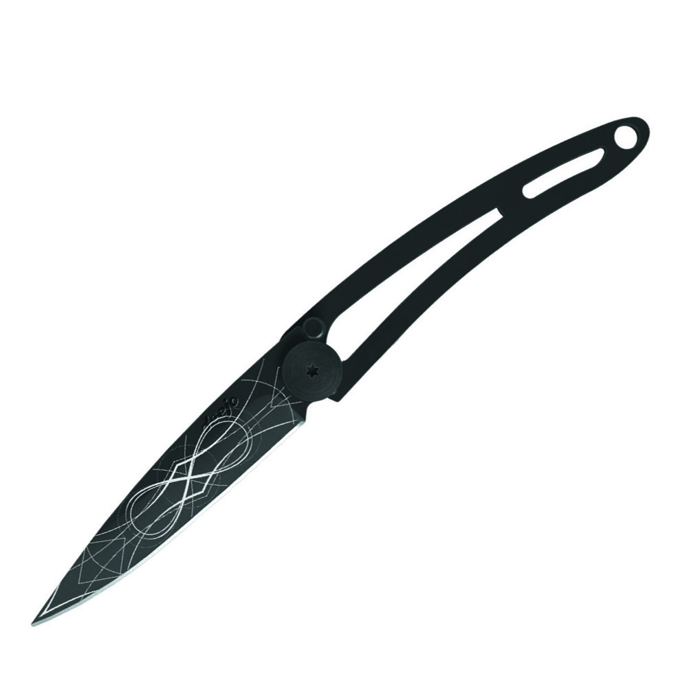 Stylový ultralehký nůž Deejo ze série Naked ve verzi 15 gramů s laserem vytetovaným motivem nekonečnVíce