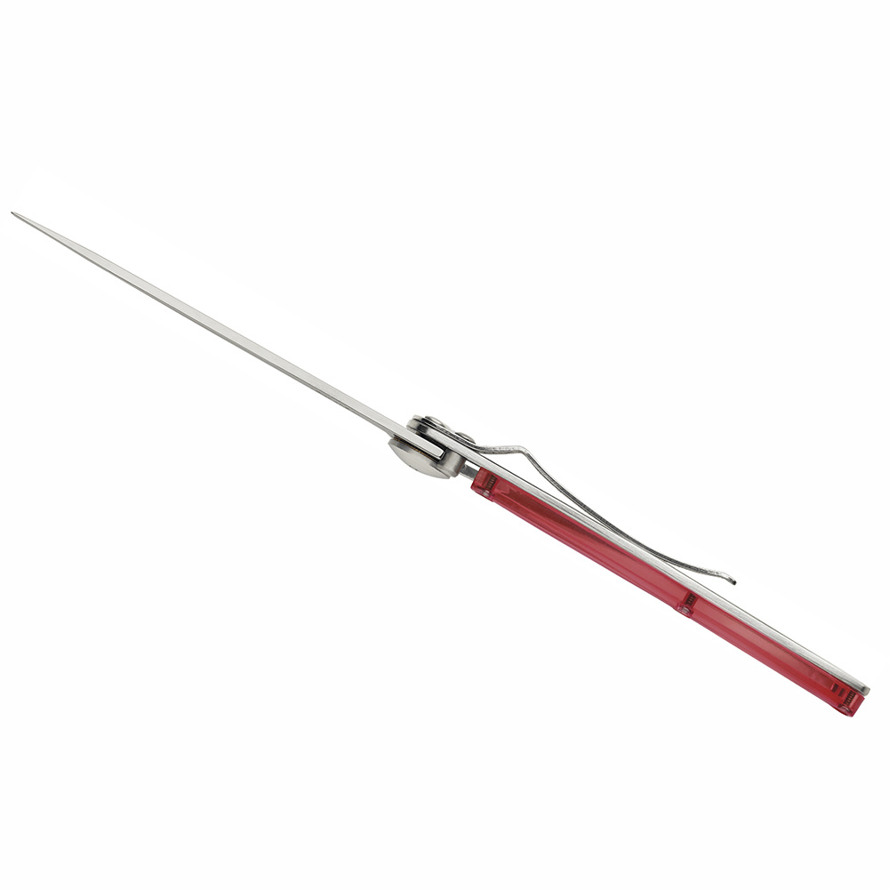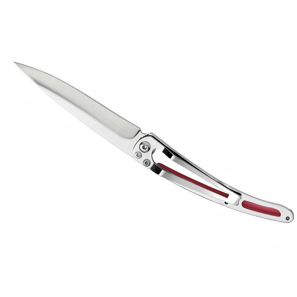 Stylový ultralehký nůž Deejo o hmotnosti 27 gramů s červenou barvou střenky a motivem "pin´up&q